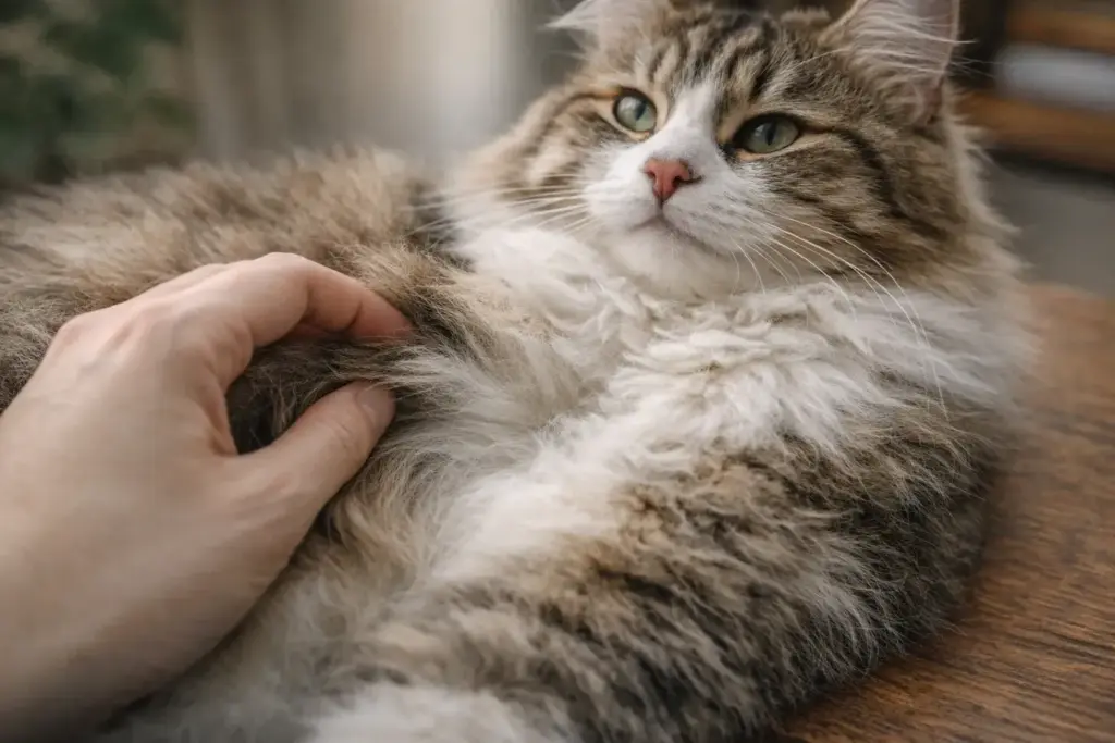 サイベリアンは寒冷地由来の被毛で、厚みのあるコートが特徴と言われます。よく「トリプルコート」という表現も出てきますが、これは個体差もあり得ます。ここで大事なのは、長さだけじゃなく毛の密度と触ったときの弾力です。